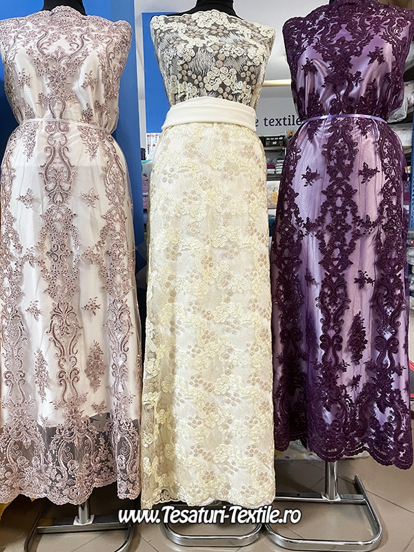 Dantela brodata cu paiete, avand borduri simetrice la ambele capete.