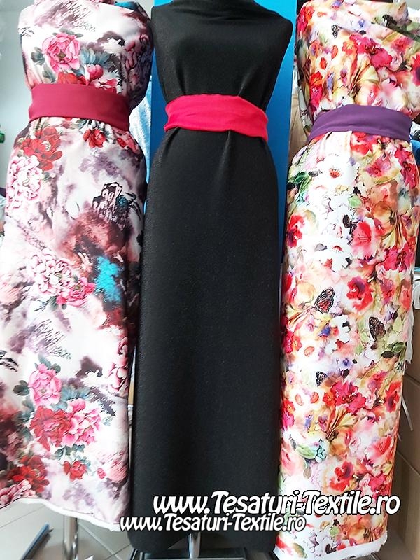 Tesatura elastica tip lurex, cu fir lucios, ideala pentru confectionarea unor rochii sau bluze elegante.