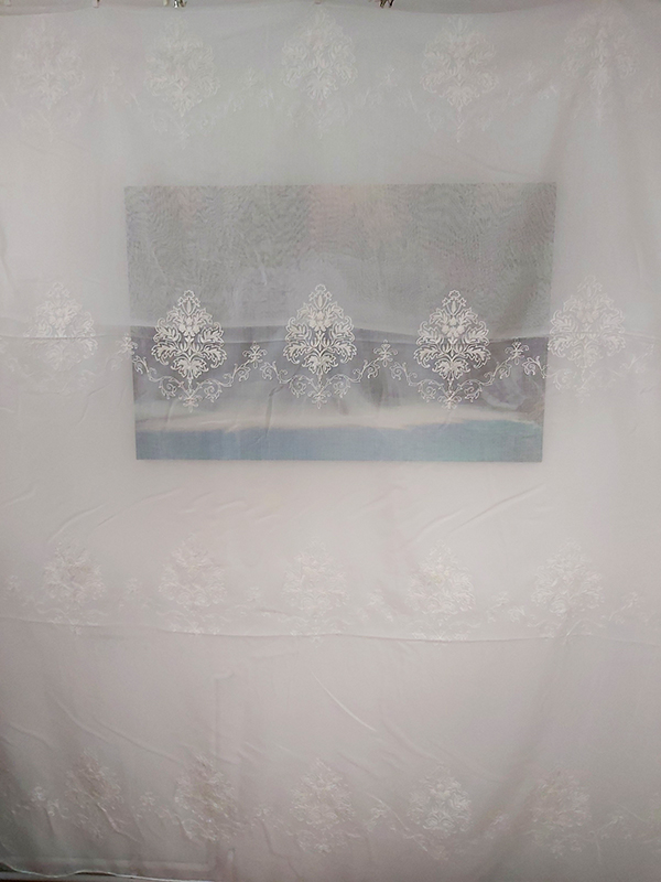 Perdea brodata pe imitatie de in, avand 3 borduri.
